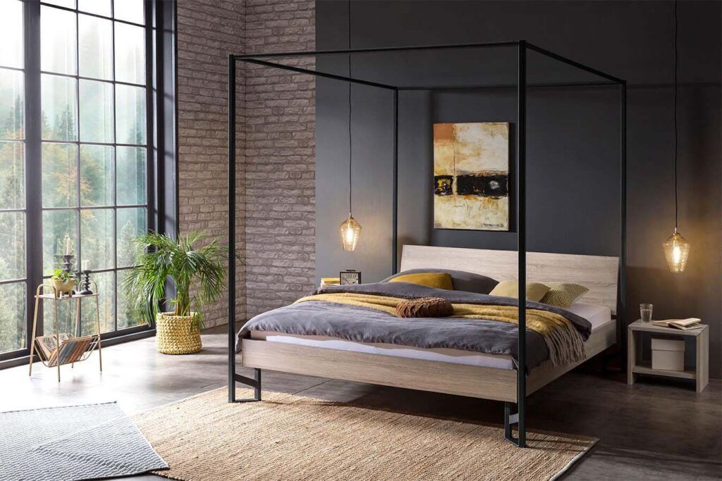 Bettrahmen: Ciluna in Eiche sägerauh Nachbildung und Füsse in Anthracit