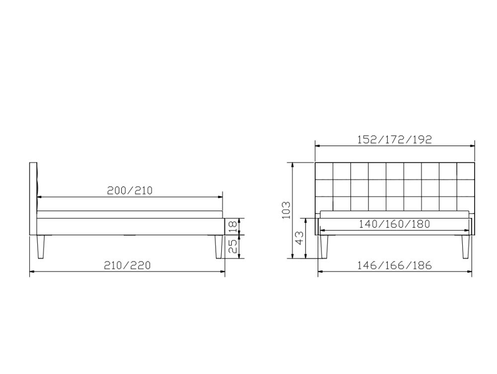 Der Hasena Bettrahmen „Bergamo“ besitzt eine Einbautiefe von 18cm und eine Rahmendicke von 2.5cm. Das Fussset besitzt eine Höhe von 20cm.