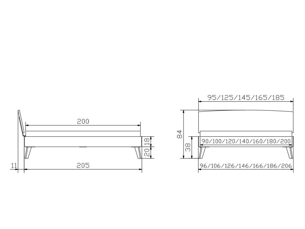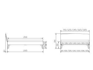 Der Hasena Bettrahmen „Bergamo“ besitzt eine Einbautiefe von 18cm und eine Rahmendicke von 2.5cm. Das Fussset besitzt eine Höhe von 20cm.