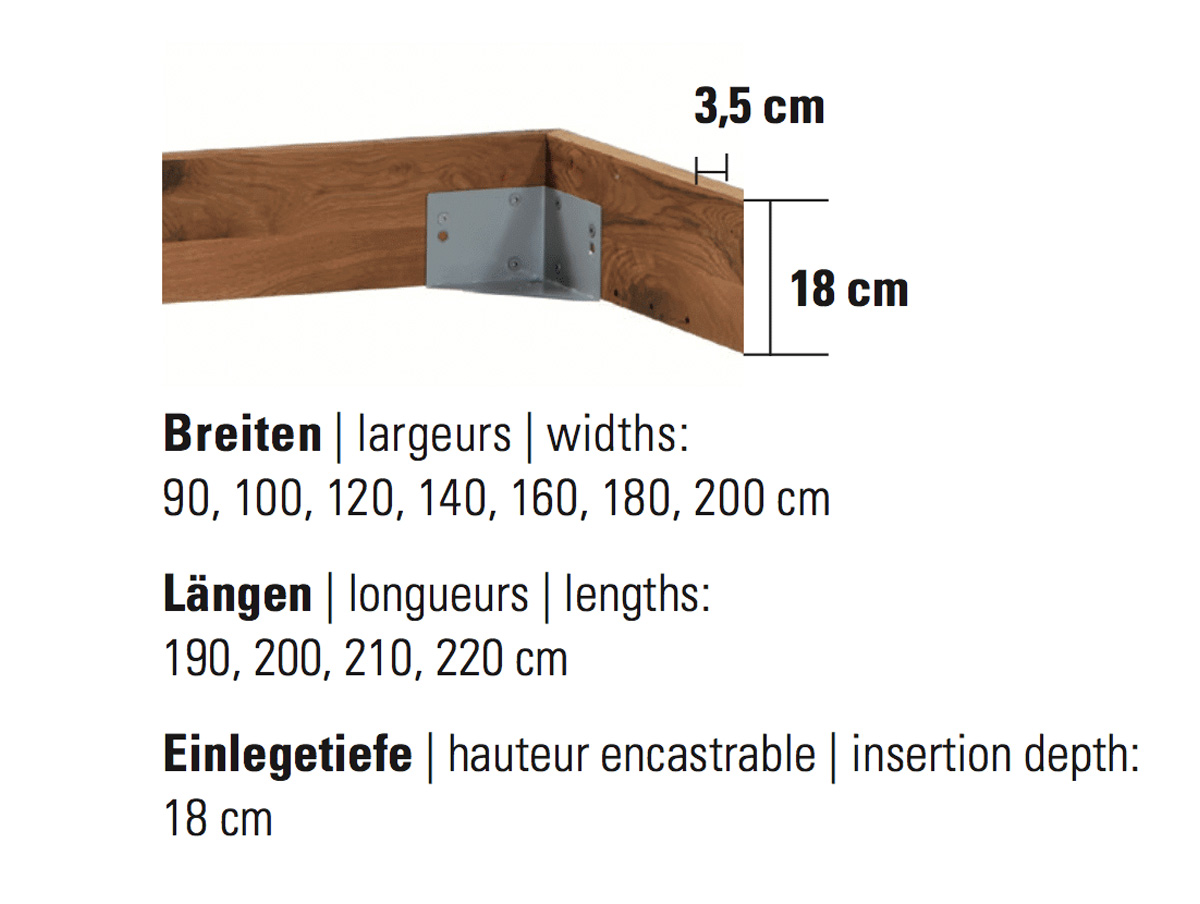 Der Hasena Bettrahmen “Oak-Vintage Cadro 18” besitzt eine Einbautiefe von 18cm und eine Rahmendicke von 3.5cm. Die Practico-Box erspart Ihnen lästiges Staubsaugen unter dem Bett. Durch die Höhe von 25cm lässt es sich morgens komfortabel aufstehen. Mit dem passenden Lattenrost funktioniert man die Practico-Box zu sehr viel Stauraum um (siehe dazu Lattenroste Ultrafree-Lift KF oder Econom-move). Das klassische Kopfteil Alpa rundet den Bettrahmen ab.