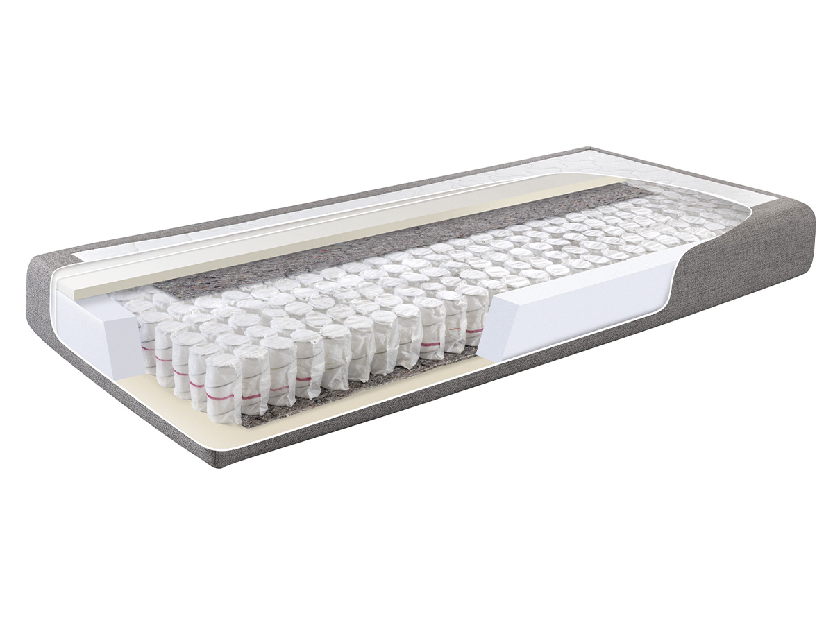 Die 5-Zonen Taschenfederkern-Matratze Mila Spring-Tex ist die Budgetlösung im Sortiment und bietet eine solide Grundlage für erholsamen Schlaf. Mit einer Höhe von 18 cm passt sie sich dank der Aufteilung in 5 Zonen den wichtigsten Körperbereichen an und unterstützt die Wirbelsäule in ihrer natürlichen Form. Der dauerelastische Komfortschaum sorgt für ein angenehmes Liegegefühl, während die integrierte Verstärkungseinlage zusätzliche Stabilität verleiht. Durch die gute Luftzirkulation entsteht ein frisches Schlafklima, das erholsame Nächte fördert. Der pflegeleichte Polyesterbezug rundet die Matratze ab und macht sie zu einer praktischen Wahl für preisbewusste Käufer.