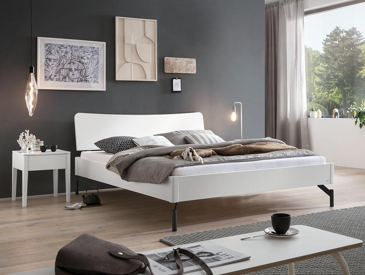 Die Massivholzvarianten stammen aus nachhaltig bewirtschafteten Wäldern und entwickeln über die Jahre ihre eigene Maserung. Jeder Baum ist einzigartig – so wird jedes Bett zu einem Unikat mit natürlichem Charakter. Die MDF-Ausführung überzeugt durch eine ruhige, gleichmässige Oberfläche und fügt sich gut in helle, moderne Schlafzimmer ein.