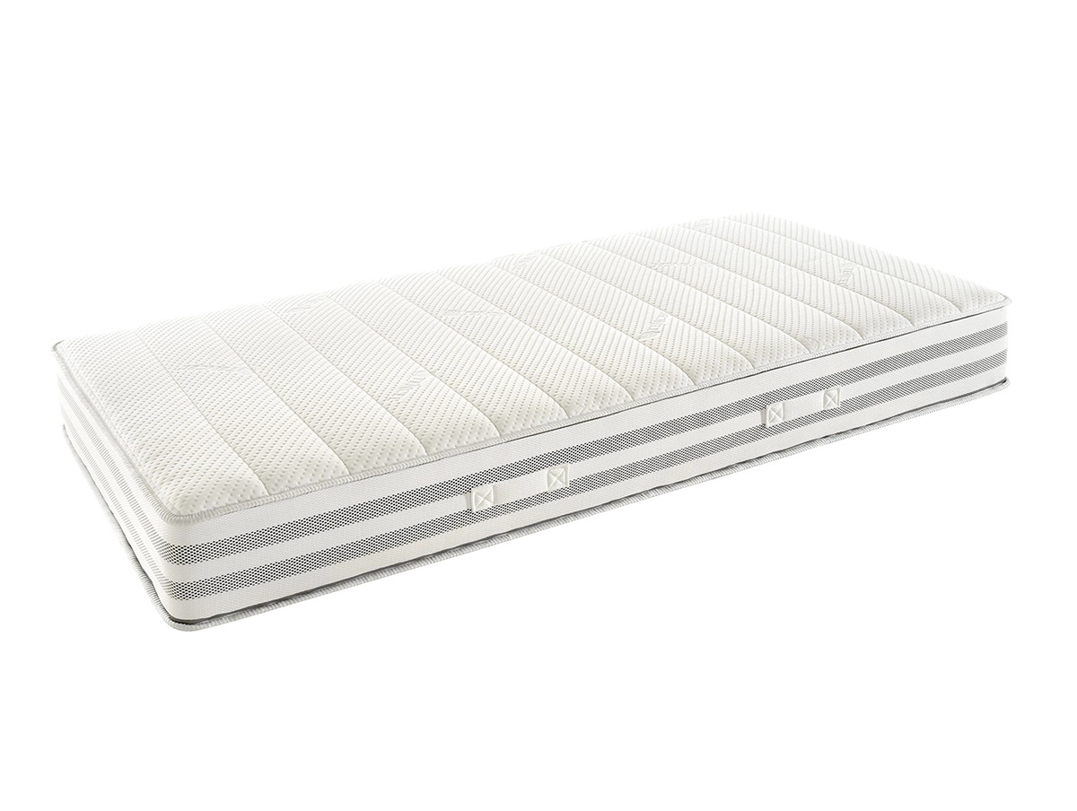 Die Robusta Matratze “Hybrid Memory” ist eine 7-Zonen-Taschenfederkernmatratze mit viscoelastischer Schaumauflage und MicroPocket-Einlagen. Die neuen MicroPocket-Taschenfedern in der Schulterzone sorgen für eine softe und punktgenaue Schulteranpassung. Die viscoelastische Schaumauflage hat zudem die Fähigkeit der “Formerinnerung”. Das heisst, der Schaum kann sich 1:1 Ihrem Körper anpassen. Dies führt nicht nur zur Entlastung der Druckstellen, sondern auch zur Verbesserung der Durchblutung. Dank der Kombination der guten Einsinkfähigkeit und der hohen Stützkraft der Matratze ist Ihr Körper ideal umsorgt. Dieses Modell kommt in drei Härtegraden und befindet sich generell im mittel- bis festen Härtegrad-Bereich. Die Höhe dieser Federkernmatratze beträgt ca. 26 cm. Zudem ist die Matratze mit einer zusätzlichen Sitzkantenverstärkung ausgestattet, die für mehr Stabilität und Komfort beim Sitzen sorgt und so die Lebensdauer der Matratze verlängert.